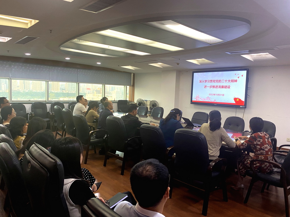 为进一步学习贯彻党的二十大精神,推进清廉医大建设,10月31日,伍伟锋副校长为教务处全体党员讲授“深入学习贯彻党的二十大精神 进一步推进清廉建设”廉政党课。活动由教务处党支部书记刘登宇主持。